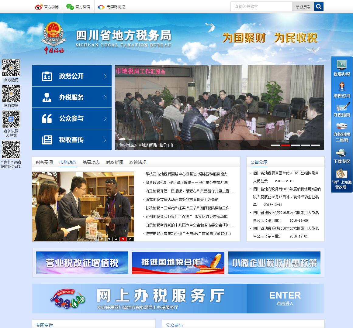 四川省地方税务局于2020-08-15被0702投稿网收录,网站相关信息来自互联网或网友分享!由于(四川省地方税务局)网站内容动态属性,时刻在变动,本站无法保证(四川省地方税务局)网站内容真实可靠!请大家查阅时,谨慎选择、自辩真伪,感谢您的理解与支持。如果您在访问(四川省地方税务局)时发现:网址失效、或网站存在非法等相关内容,请及时联系我们,我们会第一时间处理。