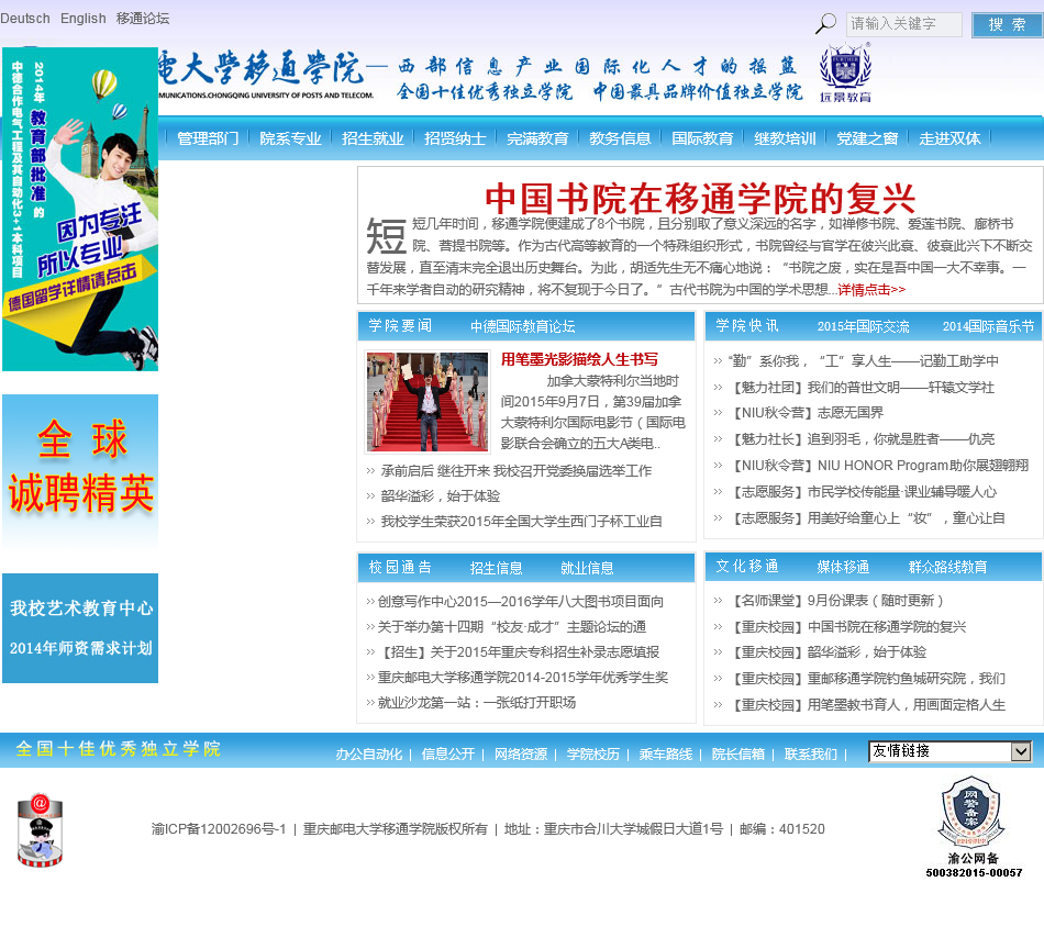 重庆邮电大学移通学院于2020-08-15被0702投稿网收录,网站相关信息来自互联网或网友分享!由于(重庆邮电大学移通学院)网站内容动态属性,时刻在变动,本站无法保证(重庆邮电大学移通学院)网站内容真实可靠!请大家查阅时,谨慎选择、自辩真伪,感谢您的理解与支持。如果您在访问(重庆邮电大学移通学院)时发现:网址失效、或网站存在非法等相关内容,请及时联系我们,我们会第一时间处理。