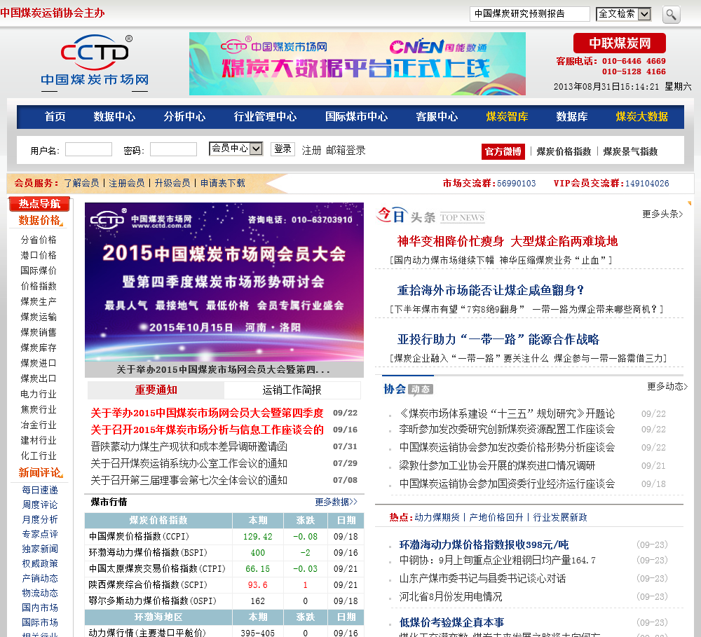 中国煤炭运销协会官网,汇集海量煤炭资讯、煤炭分析、煤炭价格及煤炭数据。国家发改委煤炭出矿价格监测平台、电煤价格监测平台,全国煤炭订货交易会指定网站。煤炭数据库涵盖煤炭产量、煤炭销量、煤炭库存、煤炭价格指数、煤炭运输、煤炭交易、煤炭资源、煤炭经营、煤炭企业等全方位的煤炭统计数据。