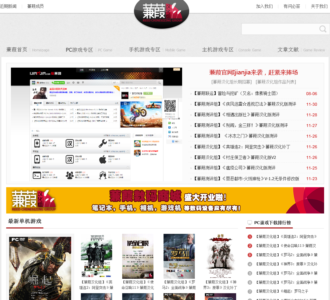 蒹葭汉化组官网是由蒹葭汉化组建立起来的一个面向广大游戏玩家,喜欢蒹葭汉化的朋友们建立起来的站点,这里将记录蒹葭汉化的坎坷路程和点滴记忆,欢迎大家访问我们的小站。