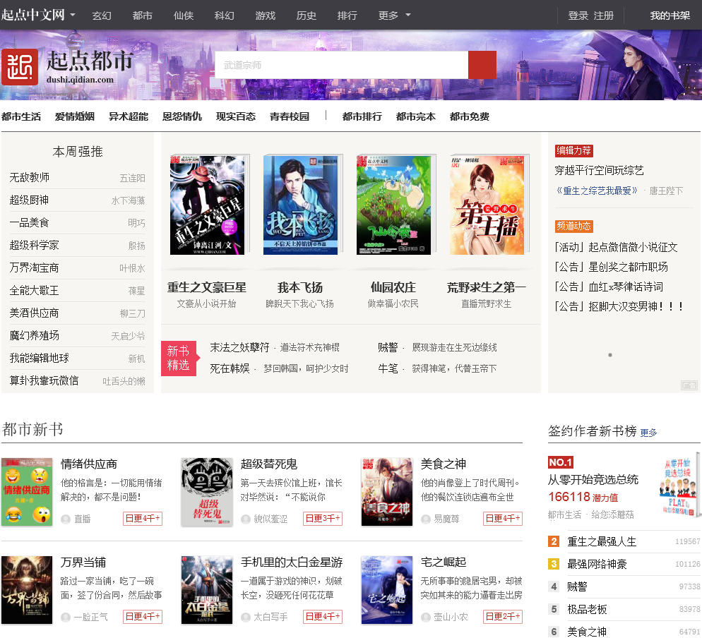 - 网站名称:起点都市小说频道