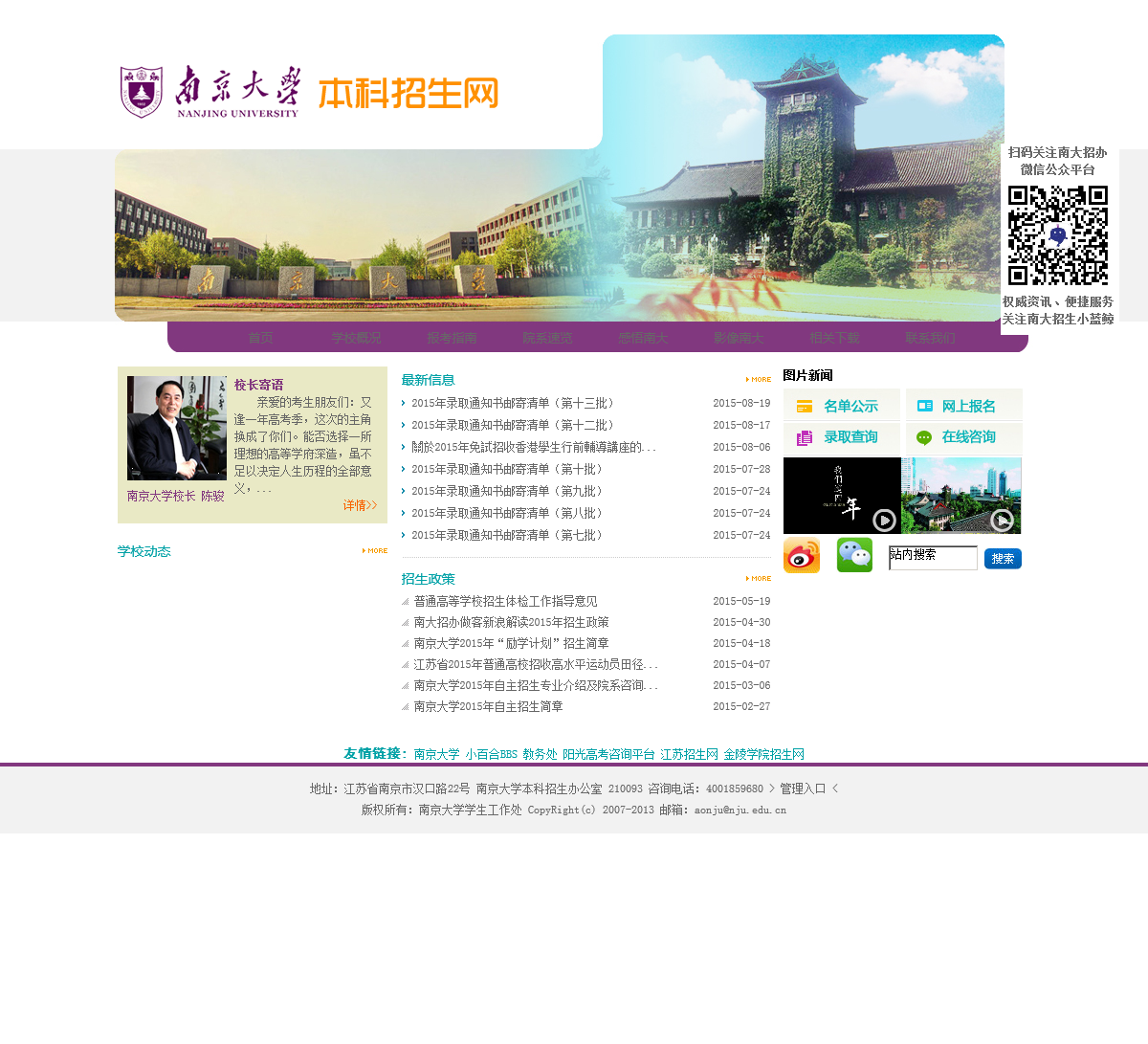 - 网站名称:南京大学本科招生网