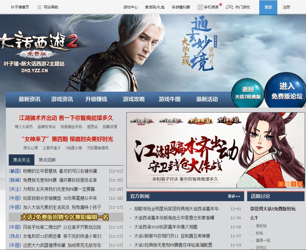 叶子猪大话西游2免费专区为你提供大话西游2免费版激活码,下载,礼包,游戏资料,游戏牛图等游戏热点新闻,尽在叶子猪大话西游2免费专区.