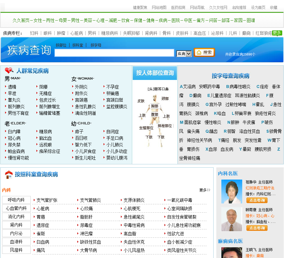 - 网站名称:久久健康网将疾病大全