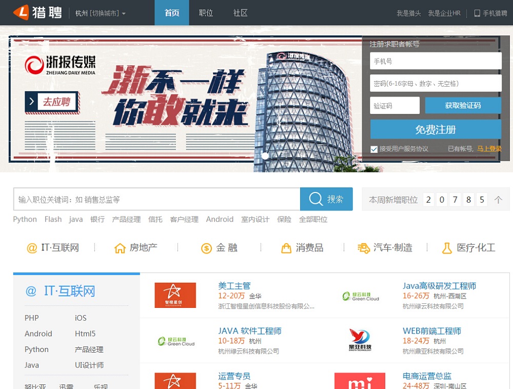 杭州猎聘网于2020-08-17被0702投稿网收录,网站相关信息来自互联网或网友分享!由于(杭州猎聘网)网站内容动态属性,时刻在变动,本站无法保证(杭州猎聘网)网站内容真实可靠!请大家查阅时,谨慎选择、自辩真伪,感谢您的理解与支持。如果您在访问(杭州猎聘网)时发现:网址失效、或网站存在非法等相关内容,请及时联系我们,我们会第一时间处理。