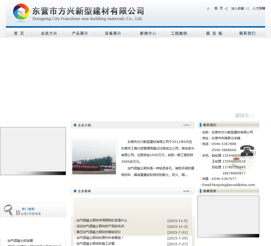 东营市方兴新型建材有限公司位于利津县北宋镇,占地面积26000多平方米,总投资8千余万元,年可生产加气混凝土砌块,蒸压加气混凝土砌块40万立方米。联系电话:0546-5367888