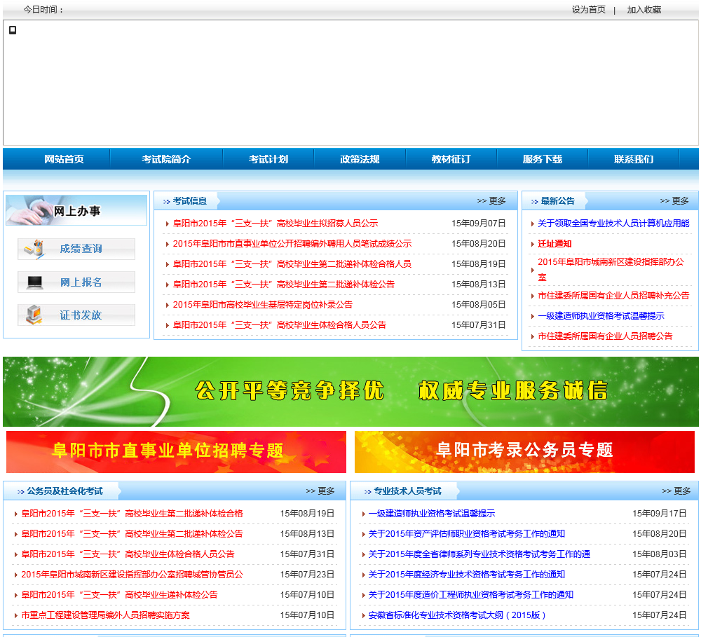- 网站名称:阜阳市人事考试网