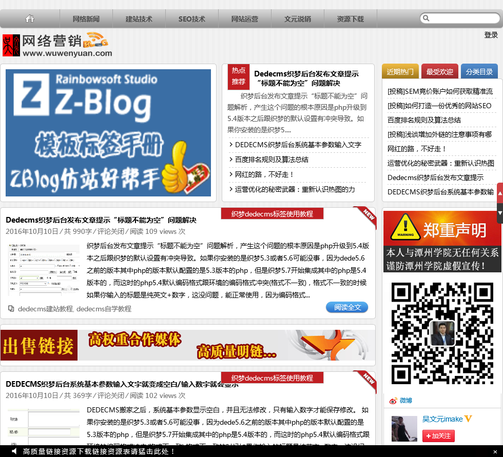 - 网站名称:吴文元的网络营销博客