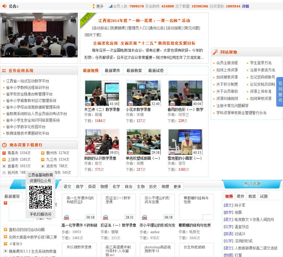 江西省基础教育资源网是由江西省教育厅主管,江西省基础教育资源中心主办的为广大教师、学生提供中小学、幼儿园、特殊教育等教育资源,及交流互动服务的网站。