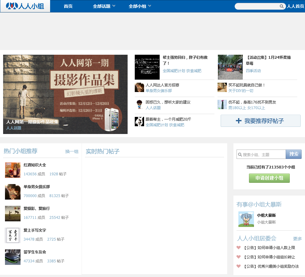 - 网站地址:xiaozu.renren.com