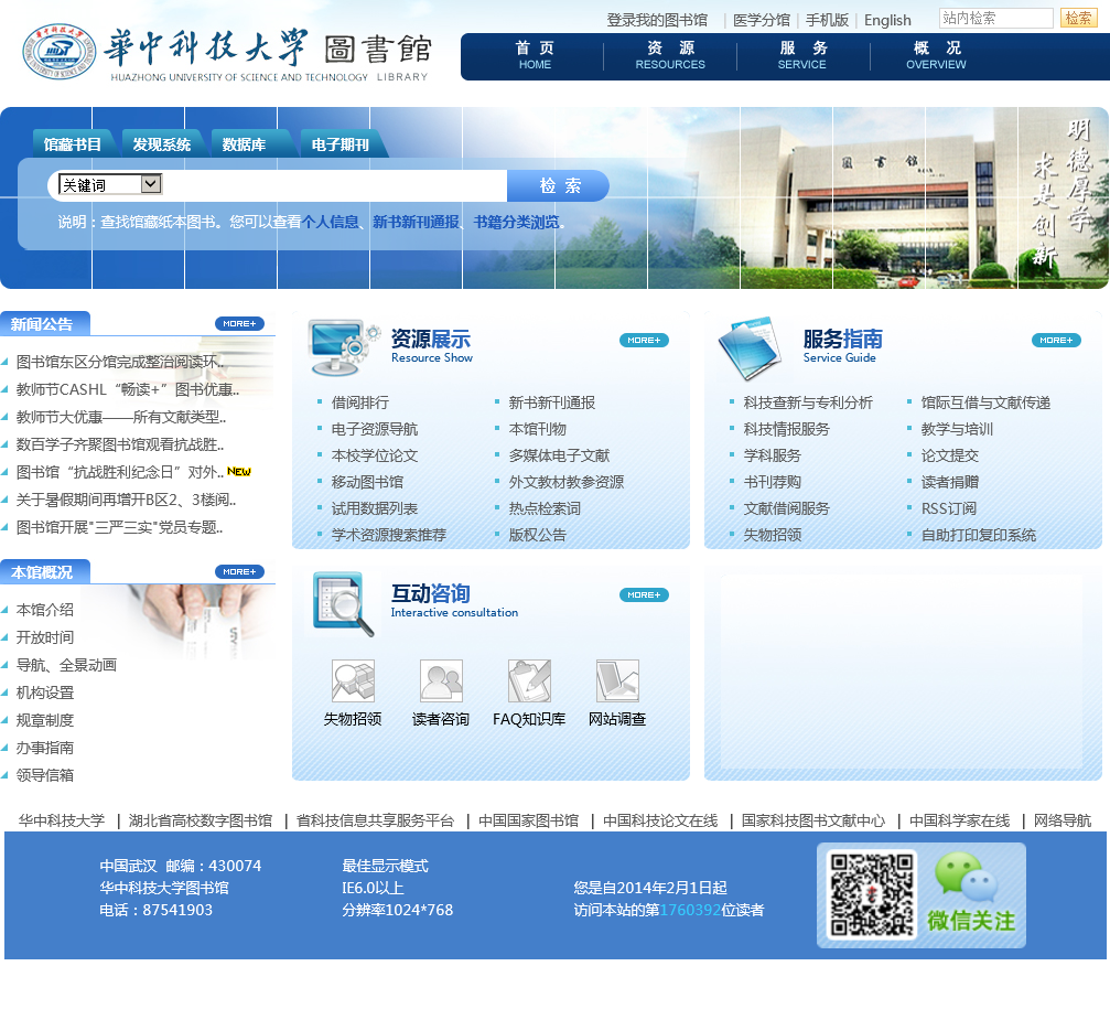 当前位置:主页 > 网站目录 > 华中科技大学图书馆www.lib.hust.edu.cn