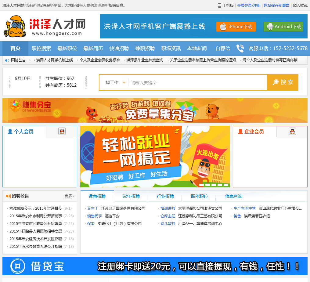 - 网站名称:洪泽人才网
