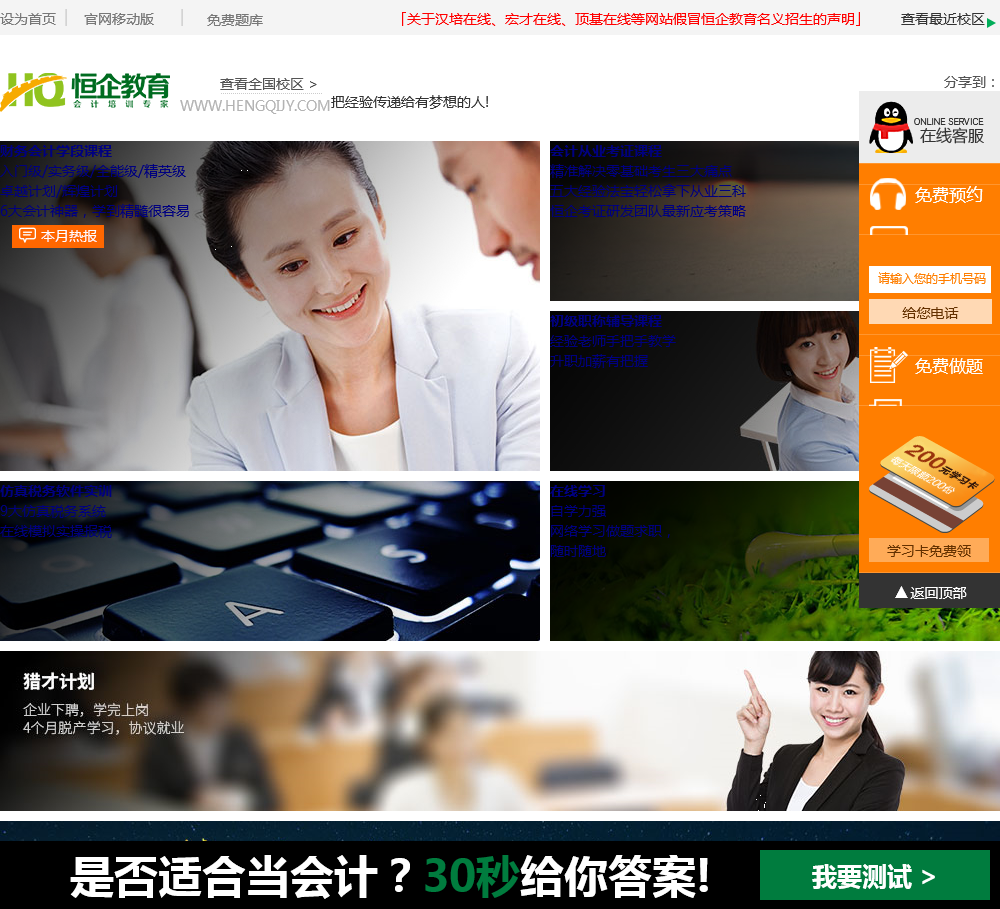 - 网站名称:恒企会计培训学校