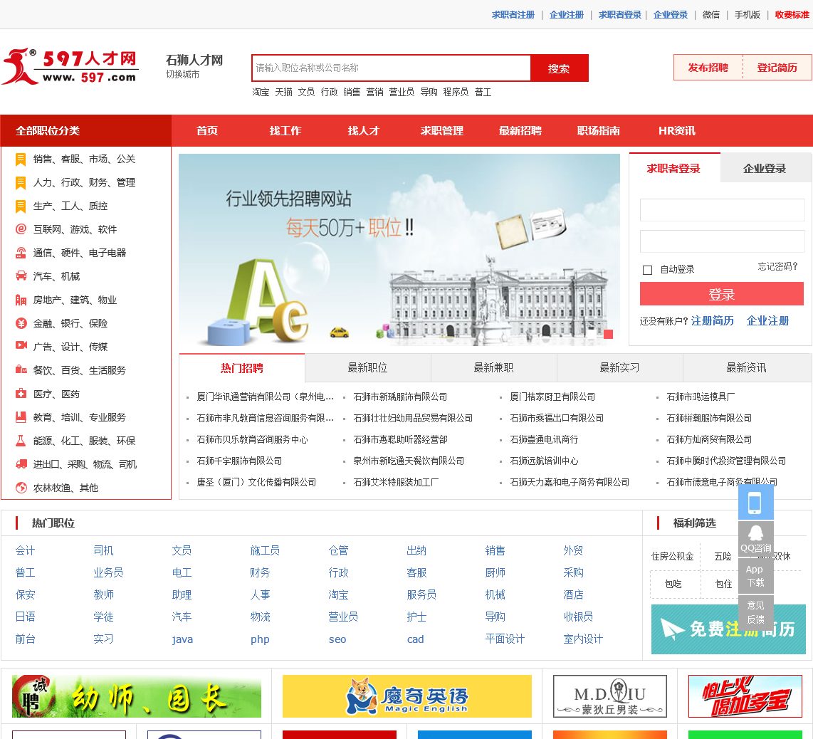 597石狮人才网于2020-08-21被0702投稿网收录,网站相关信息来自互联网或网友分享!由于(597石狮人才网)网站内容动态属性,时刻在变动,本站无法保证(597石狮人才网)网站内容真实可靠!请大家查阅时,谨慎选择、自辩真伪,感谢您的理解与支持。如果您在访问(597石狮人才网)时发现:网址失效、或网站存在非法等相关内容,请及时联系我们,我们会第一时间处理。