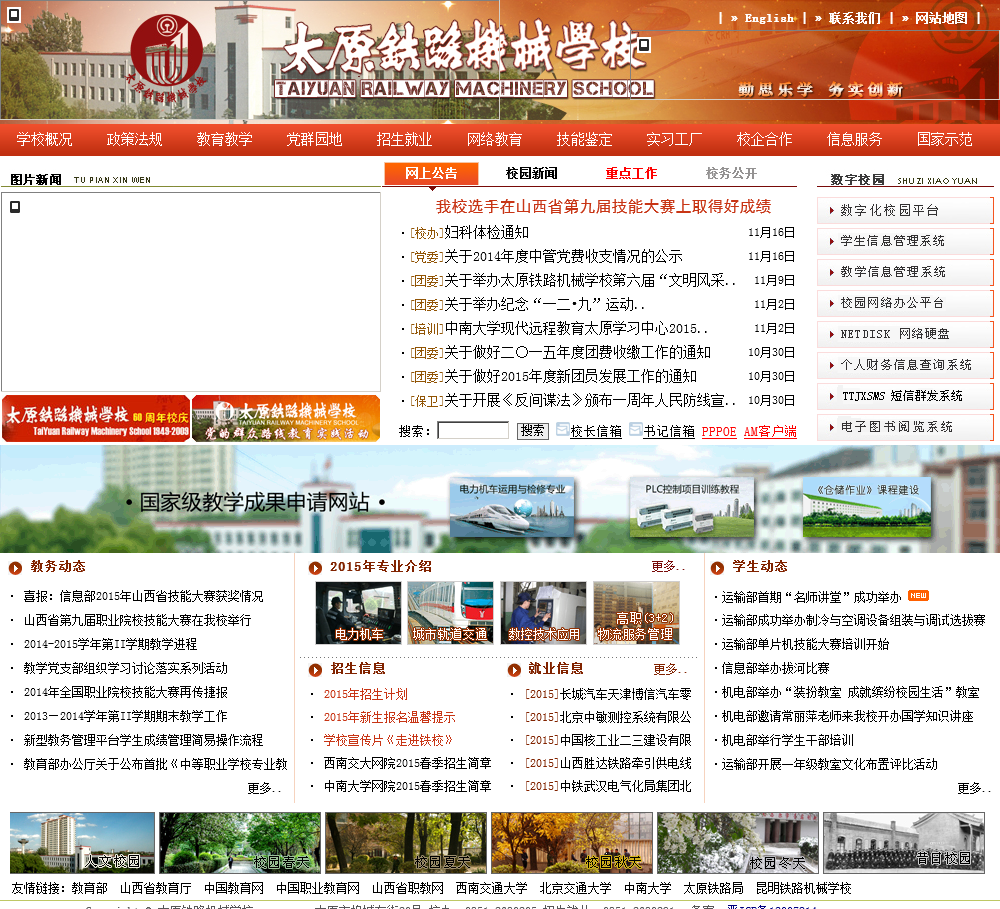 太原铁路机械学校于2020-08-21被0702投稿网收录,网站相关信息来自互联网或网友分享!由于(太原铁路机械学校)网站内容动态属性,时刻在变动,本站无法保证(太原铁路机械学校)网站内容真实可靠!请大家查阅时,谨慎选择、自辩真伪,感谢您的理解与支持。如果您在访问(太原铁路机械学校)时发现:网址失效、或网站存在非法等相关内容,请及时联系我们,我们会第一时间处理。