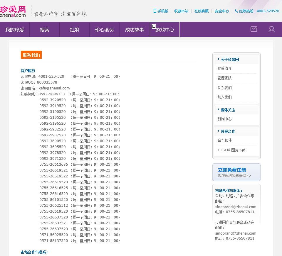 - 网站名称:珍爱网客服电话
