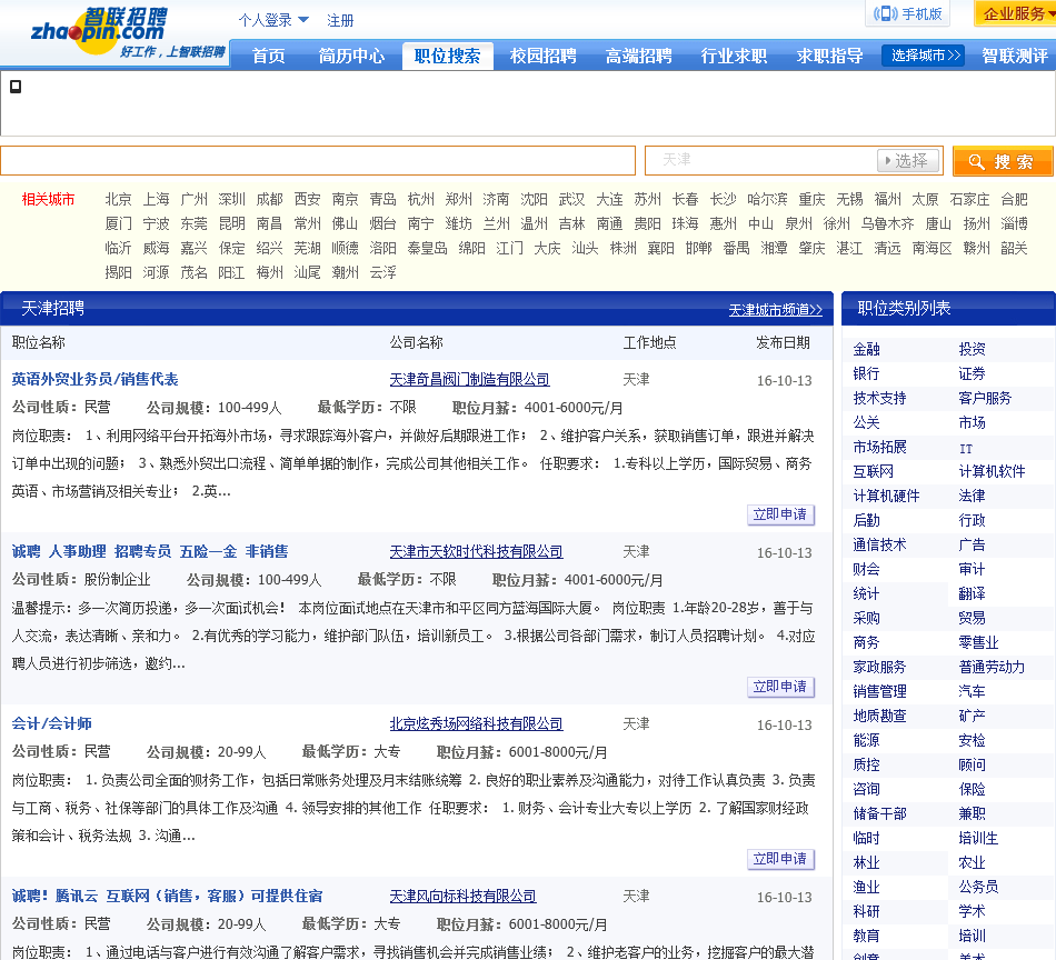 - 网站地址:tianjin.zhaopin.com