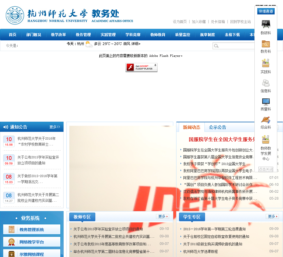 杭师大教务处于2020-08-22被0702投稿网收录,网站相关信息来自互联网或网友分享!由于(杭师大教务处)网站内容动态属性,时刻在变动,本站无法保证(杭师大教务处)网站内容真实可靠!请大家查阅时,谨慎选择、自辩真伪,感谢您的理解与支持。如果您在访问(杭师大教务处)时发现:网址失效、或网站存在非法等相关内容,请及时联系我们,我们会第一时间处理。