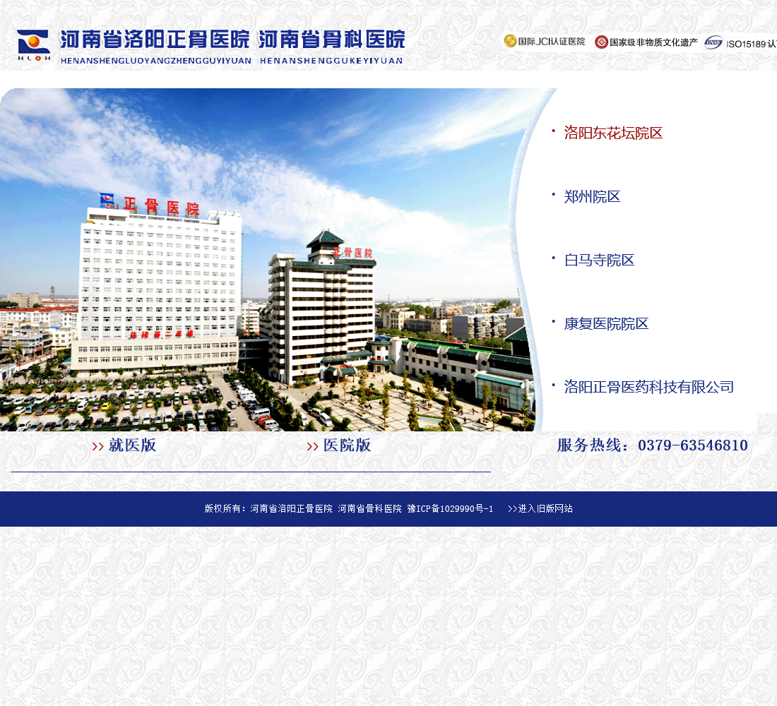 河南省洛阳正骨医院于2020-08-22被0702投稿网收录,网站相关信息来自互联网或网友分享!由于(河南省洛阳正骨医院)网站内容动态属性,时刻在变动,本站无法保证(河南省洛阳正骨医院)网站内容真实可靠!请大家查阅时,谨慎选择、自辩真伪,感谢您的理解与支持。如果您在访问(河南省洛阳正骨医院)时发现:网址失效、或网站存在非法等相关内容,请及时联系我们,我们会第一时间处理。