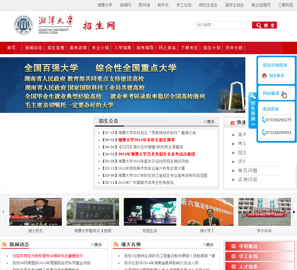 湘潭大学本科招生网于2020-08-23被0702投稿网收录,网站相关信息来自互联网或网友分享!由于(湘潭大学本科招生网)网站内容动态属性,时刻在变动,本站无法保证(湘潭大学本科招生网)网站内容真实可靠!请大家查阅时,谨慎选择、自辩真伪,感谢您的理解与支持。如果您在访问(湘潭大学本科招生网)时发现:网址失效、或网站存在非法等相关内容,请及时联系我们,我们会第一时间处理。