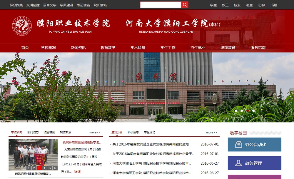 濮阳职业技术学院于2020-08-23被0702投稿网收录,网站相关信息来自互联网或网友分享!由于(濮阳职业技术学院)网站内容动态属性,时刻在变动,本站无法保证(濮阳职业技术学院)网站内容真实可靠!请大家查阅时,谨慎选择、自辩真伪,感谢您的理解与支持。如果您在访问(濮阳职业技术学院)时发现:网址失效、或网站存在非法等相关内容,请及时联系我们,我们会第一时间处理。