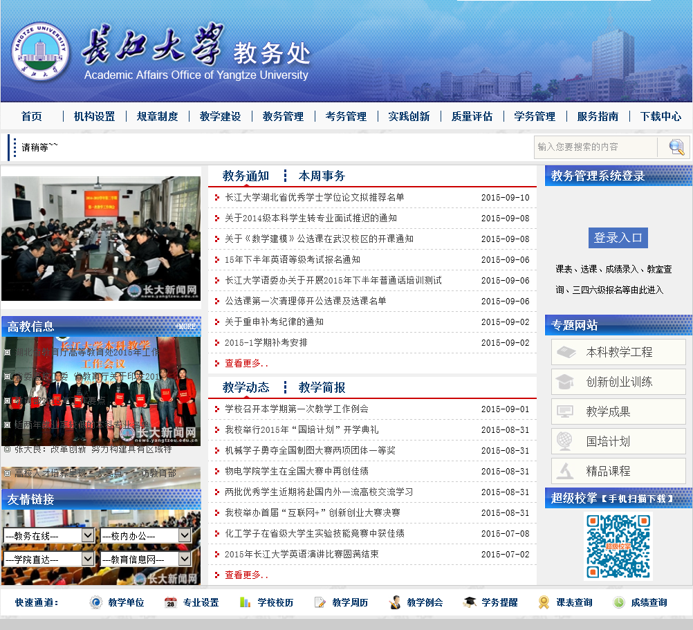 长江大学教务处于2020-08-23被0702投稿网收录,网站相关信息来自互联网或网友分享!由于(长江大学教务处)网站内容动态属性,时刻在变动,本站无法保证(长江大学教务处)网站内容真实可靠!请大家查阅时,谨慎选择、自辩真伪,感谢您的理解与支持。如果您在访问(长江大学教务处)时发现:网址失效、或网站存在非法等相关内容,请及时联系我们,我们会第一时间处理。