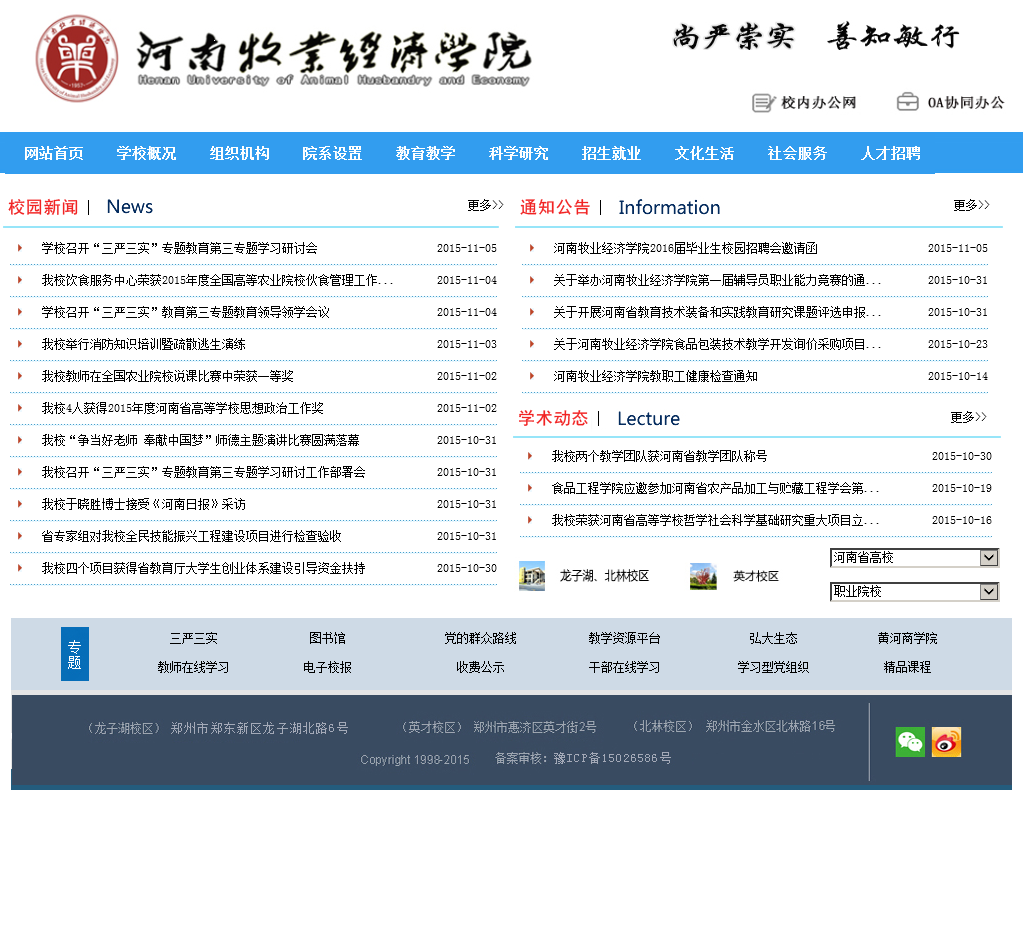 河南牧业经济学院官网于2020-08-23被0702投稿网收录,网站相关信息来自互联网或网友分享!由于(河南牧业经济学院官网)网站内容动态属性,时刻在变动,本站无法保证(河南牧业经济学院官网)网站内容真实可靠!请大家查阅时,谨慎选择、自辩真伪,感谢您的理解与支持。如果您在访问(河南牧业经济学院官网)时发现:网址失效、或网站存在非法等相关内容,请及时联系我们,我们会第一时间处理。