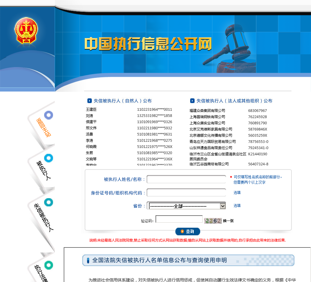 当前位置:主页 > 网站目录 > 全国法院失信被执行人名单信息公布与查询shixin.court.gov.cn