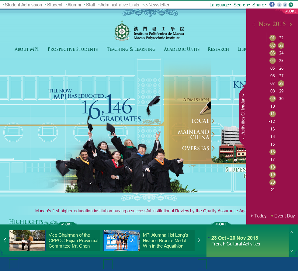 澳门理工学院于2020-08-24被0702投稿网收录,网站相关信息来自互联网或网友分享!由于(澳门理工学院)网站内容动态属性,时刻在变动,本站无法保证(澳门理工学院)网站内容真实可靠!请大家查阅时,谨慎选择、自辩真伪,感谢您的理解与支持。如果您在访问(澳门理工学院)时发现:网址失效、或网站存在非法等相关内容,请及时联系我们,我们会第一时间处理。
