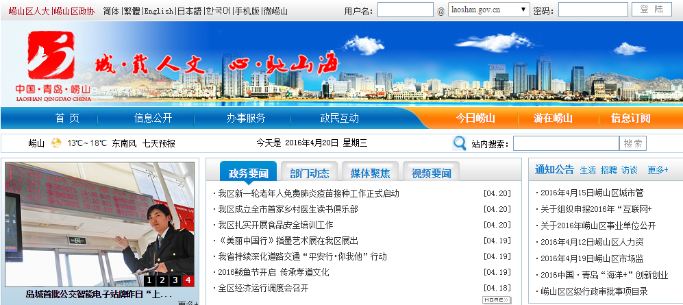 当前位置:主页 > 网站目录 > 崂山区委区政府门户网站laoshan.gov.cn