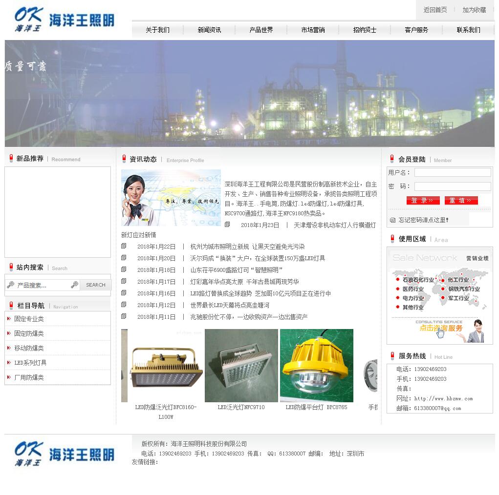 深圳海洋王照明科技股份有限公司主要生产深圳海洋王品牌:LED|强光|防爆|手电筒|防爆灯|平台灯|通路灯||棚顶灯|投光灯|应急工作灯等照明灯具