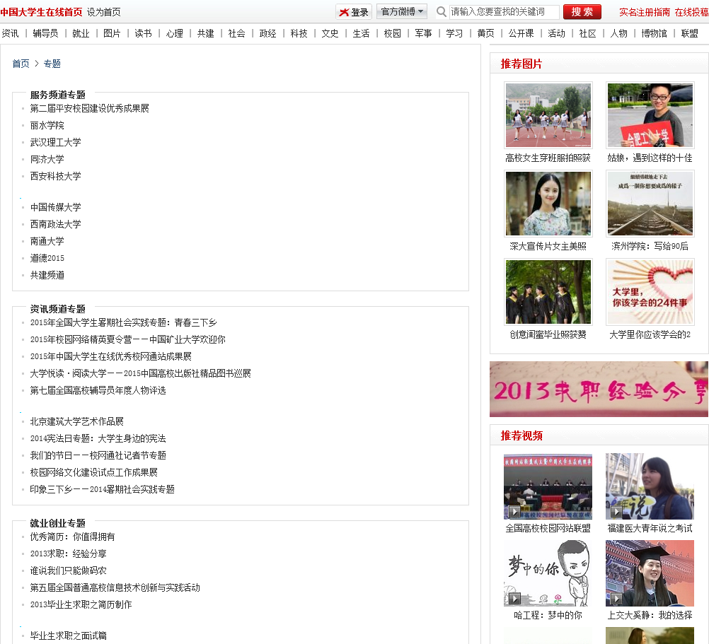 当前位置:主页 > 网站目录 > 中国大学生在线专题频道special.univs.cn