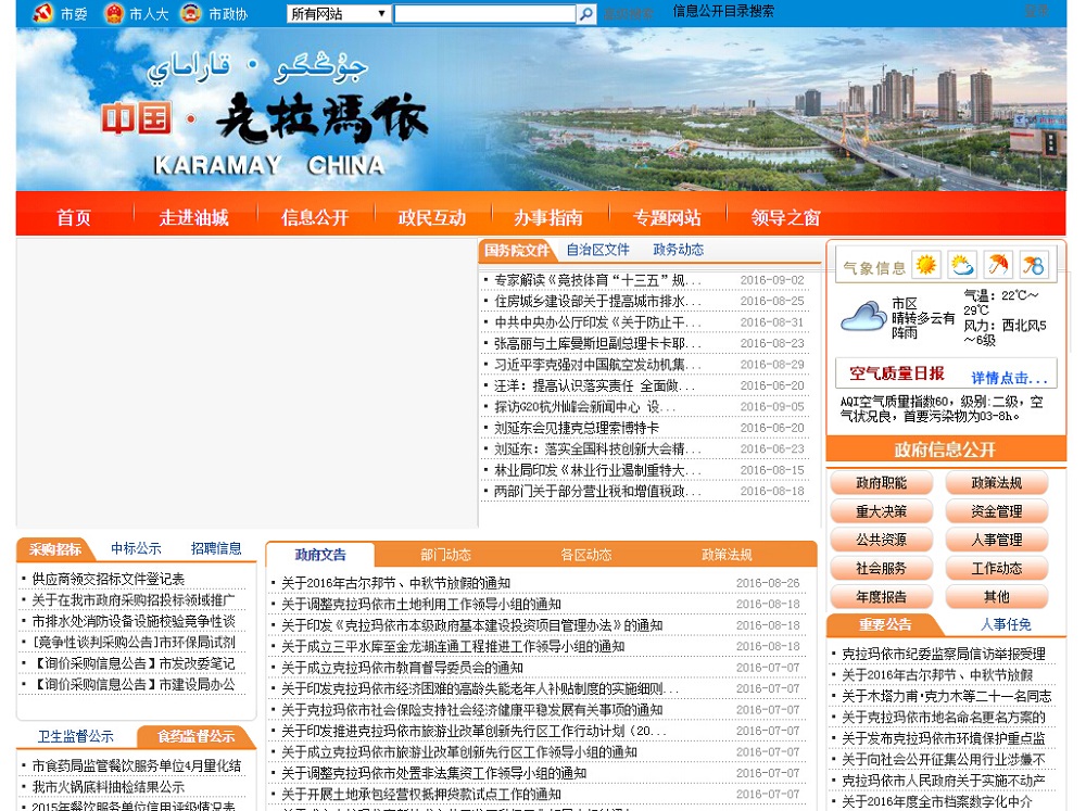 - 网站名称:克拉玛依市政府网站