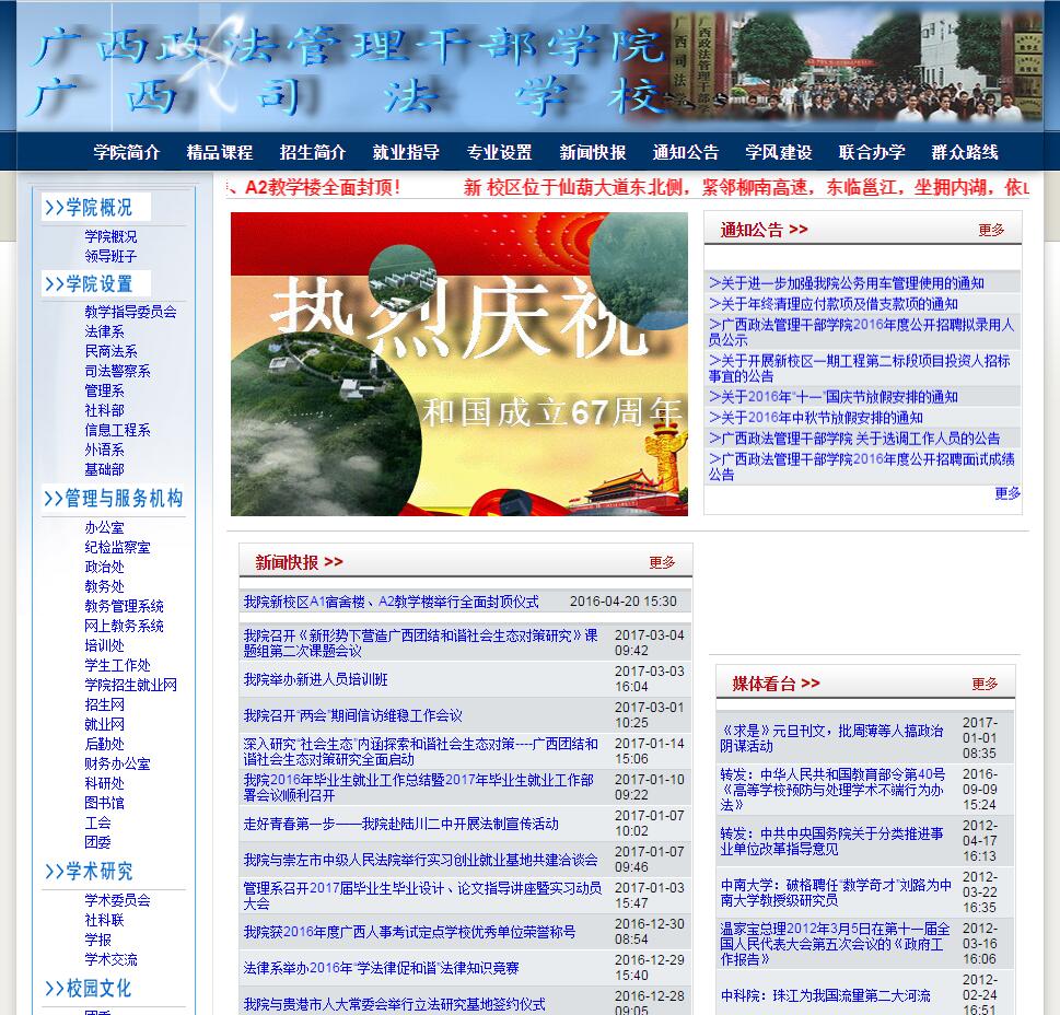 广西政法管理干部学院于2020-08-25被0702投稿网收录,网站相关信息来自互联网或网友分享!由于(广西政法管理干部学院)网站内容动态属性,时刻在变动,本站无法保证(广西政法管理干部学院)网站内容真实可靠!请大家查阅时,谨慎选择、自辩真伪,感谢您的理解与支持。如果您在访问(广西政法管理干部学院)时发现:网址失效、或网站存在非法等相关内容,请及时联系我们,我们会第一时间处理。
