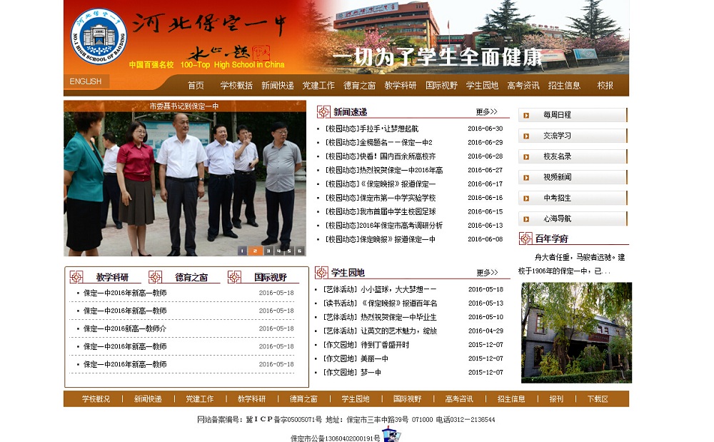 保定一中于2020-08-25被0702投稿网收录,网站相关信息来自互联网或网友分享!由于(保定一中)网站内容动态属性,时刻在变动,本站无法保证(保定一中)网站内容真实可靠!请大家查阅时,谨慎选择、自辩真伪,感谢您的理解与支持。如果您在访问(保定一中)时发现:网址失效、或网站存在非法等相关内容,请及时联系我们,我们会第一时间处理。