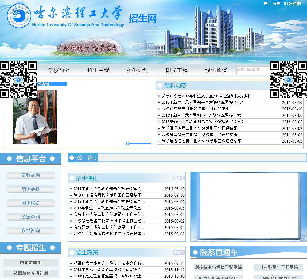 哈尔滨理工大学招生网是哈尔滨理工大学官方网站下的招生专网,主要针对想报考哈尔滨理工大学的考生,发布各类本科招生信息。