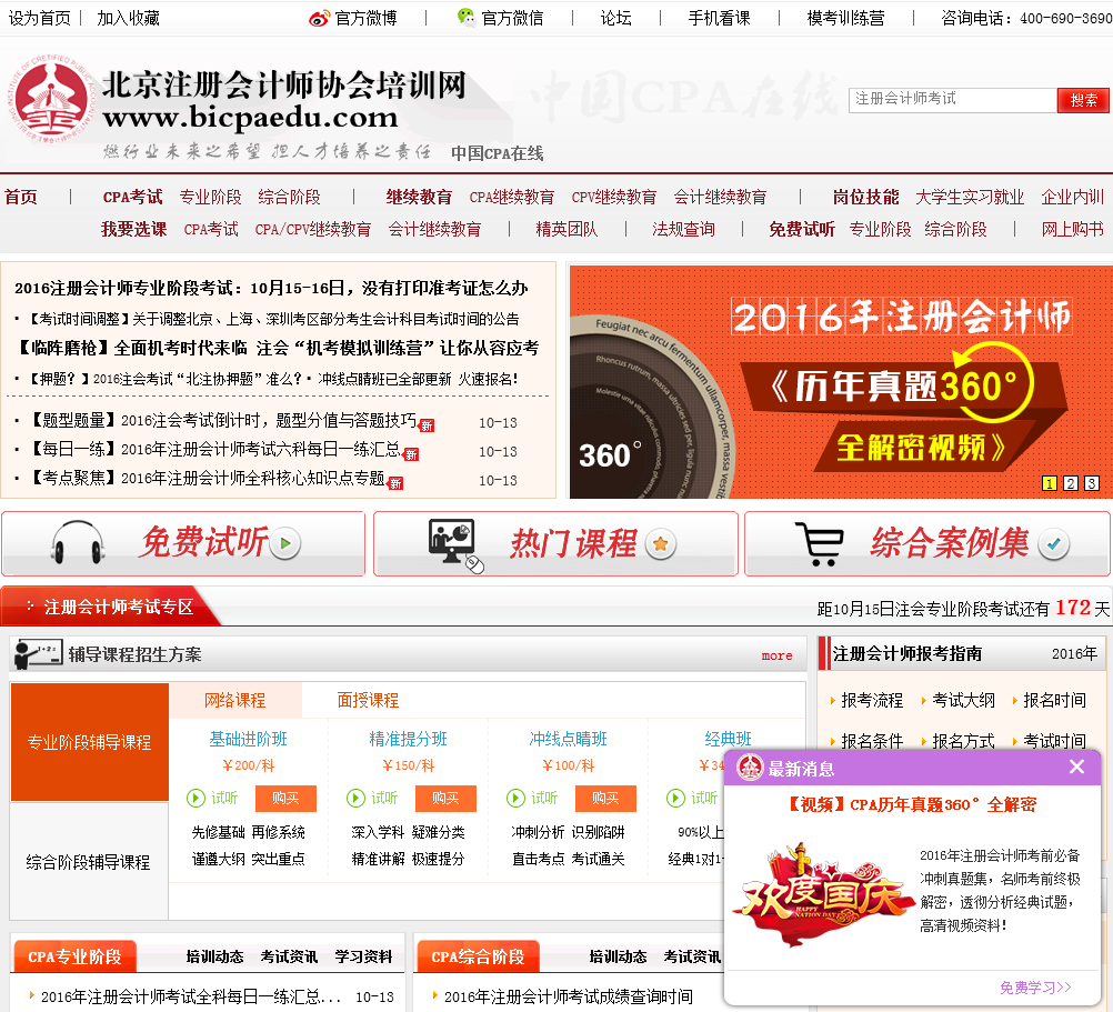北京注册会计师协会培训网(中国CPA在线)是全国唯一由注册会计师管理机构主办的官方注册会计师培训网!主要提供注册会计师考试/cpa考试的相关信息,包括2015年注册会计师考试报名时间,注册会计师报名条件,注册会计师教材等信息,并且为您提供注册会计师成绩查询,注册会计师培训,注册会计师继续教育等服务内容。