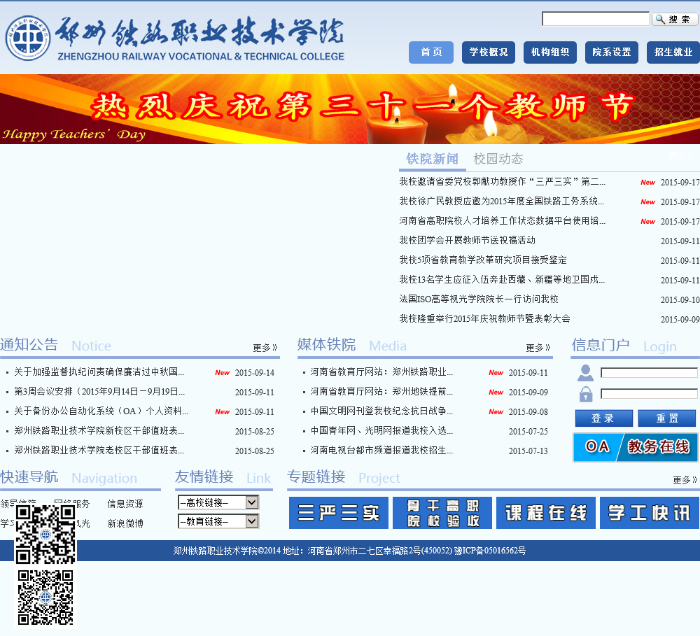 郑州铁路职业技术学院于2020-08-29被0702投稿网收录,网站相关信息来自互联网或网友分享!由于(郑州铁路职业技术学院)网站内容动态属性,时刻在变动,本站无法保证(郑州铁路职业技术学院)网站内容真实可靠!请大家查阅时,谨慎选择、自辩真伪,感谢您的理解与支持。如果您在访问(郑州铁路职业技术学院)时发现:网址失效、或网站存在非法等相关内容,请及时联系我们,我们会第一时间处理。
