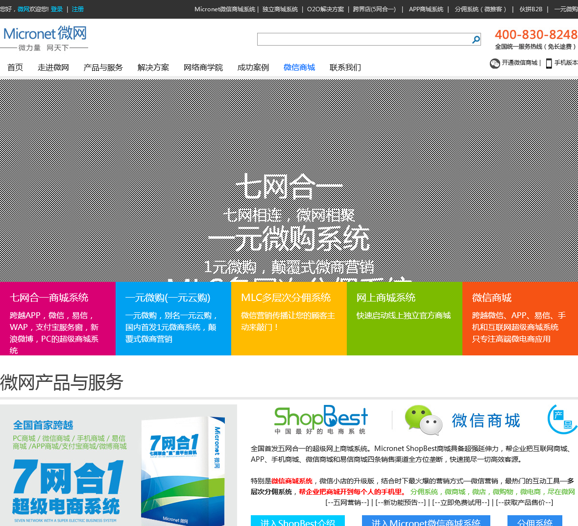 Micronet微信商城系统,全国首发五网合一的超级商城系统,把您的商城开到每个人的手机里。微网是微信商城系统开发商。全国热线:400-830-8248