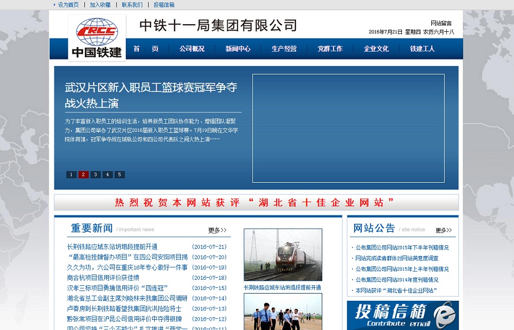 中铁十一局集团有限公司于2020-08-31被0702投稿网收录,网站相关信息来自互联网或网友分享!由于(中铁十一局集团有限公司)网站内容动态属性,时刻在变动,本站无法保证(中铁十一局集团有限公司)网站内容真实可靠!请大家查阅时,谨慎选择、自辩真伪,感谢您的理解与支持。如果您在访问(中铁十一局集团有限公司)时发现:网址失效、或网站存在非法等相关内容,请及时联系我们,我们会第一时间处理。