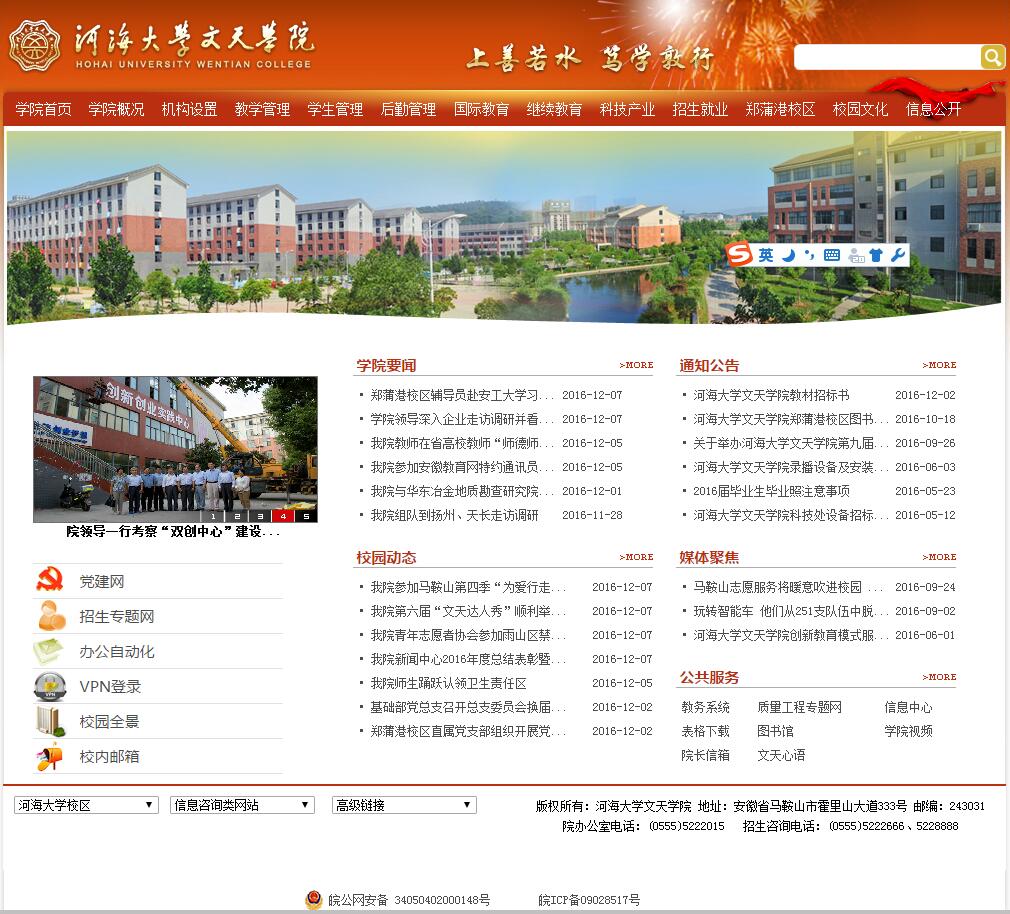 河海大学文天学院于2020-09-02被0702投稿网收录,网站相关信息来自互联网或网友分享!由于(河海大学文天学院)网站内容动态属性,时刻在变动,本站无法保证(河海大学文天学院)网站内容真实可靠!请大家查阅时,谨慎选择、自辩真伪,感谢您的理解与支持。如果您在访问(河海大学文天学院)时发现:网址失效、或网站存在非法等相关内容,请及时联系我们,我们会第一时间处理。