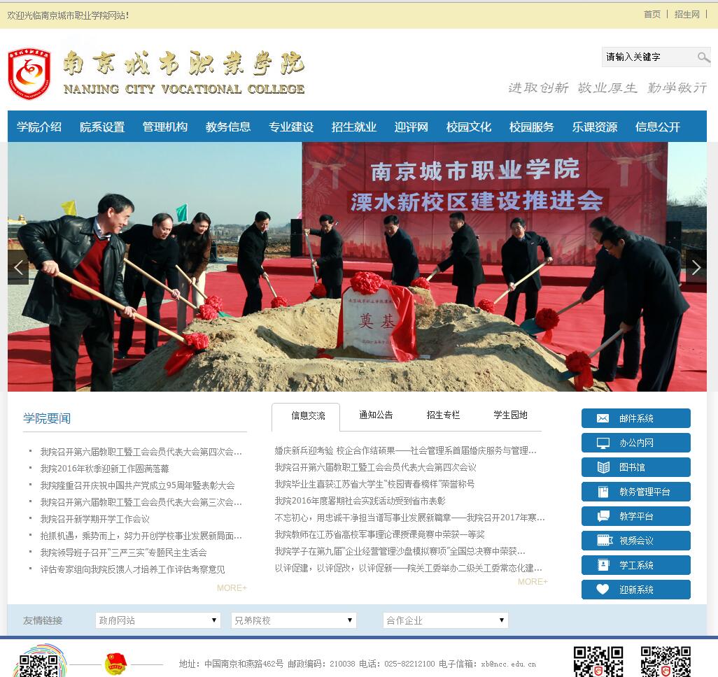 南京城市职业学院于2020-09-03被0702投稿网收录,网站相关信息来自互联网或网友分享!由于(南京城市职业学院)网站内容动态属性,时刻在变动,本站无法保证(南京城市职业学院)网站内容真实可靠!请大家查阅时,谨慎选择、自辩真伪,感谢您的理解与支持。如果您在访问(南京城市职业学院)时发现:网址失效、或网站存在非法等相关内容,请及时联系我们,我们会第一时间处理。