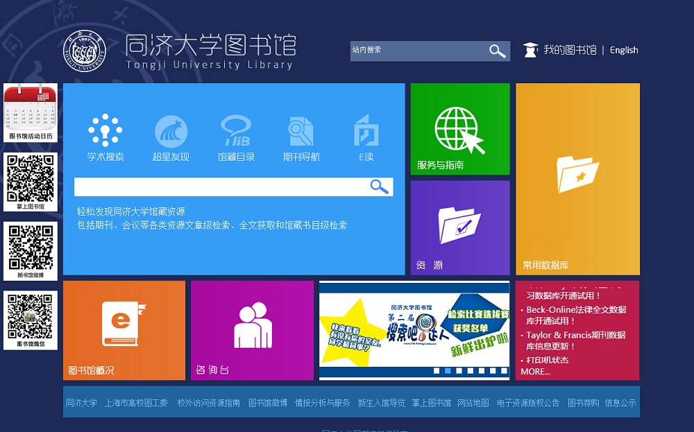 - 网站地址:lib.tongji.edu.cn