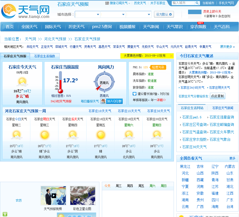 - 网站地址:shijiazhuang.tianqi.com