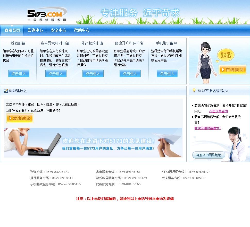 5173客服中心于2020-09-04被0702投稿网收录,网站相关信息来自互联网或网友分享!由于(5173客服中心)网站内容动态属性,时刻在变动,本站无法保证(5173客服中心)网站内容真实可靠!请大家查阅时,谨慎选择、自辩真伪,感谢您的理解与支持。如果您在访问(5173客服中心)时发现:网址失效、或网站存在非法等相关内容,请及时联系我们,我们会第一时间处理。