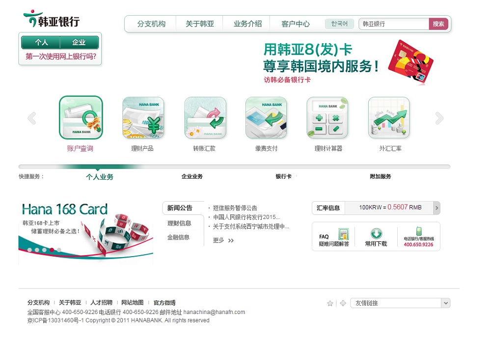 - 网站地址:www.hanabank.cn