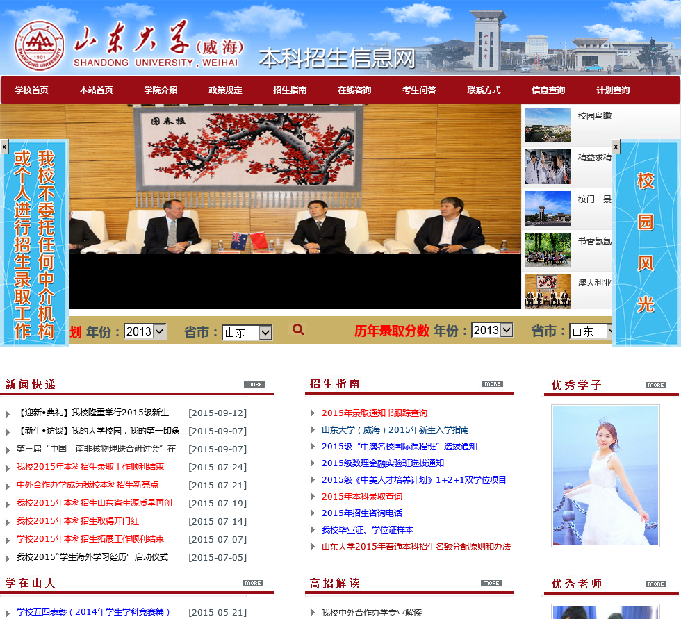 山东大学(威海)招生网是 山东大学(威海)官方招生网站,专为报考 山东大学(威海)的考生提供本科招生信息。