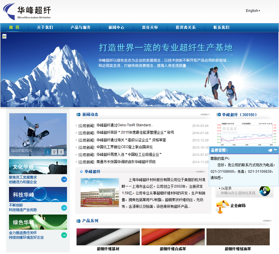 华峰超纤于2020-09-05被0702投稿网收录,网站相关信息来自互联网或网友分享!由于(华峰超纤)网站内容动态属性,时刻在变动,本站无法保证(华峰超纤)网站内容真实可靠!请大家查阅时,谨慎选择、自辩真伪,感谢您的理解与支持。如果您在访问(华峰超纤)时发现:网址失效、或网站存在非法等相关内容,请及时联系我们,我们会第一时间处理。