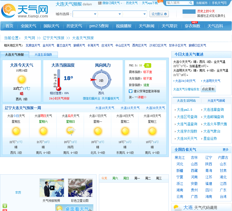 - 网站地址:dalian.tianqi.com