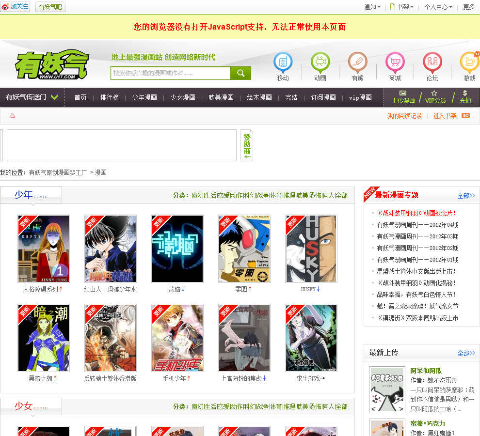 有妖气漫画于2020-09-06被0702投稿网收录,网站相关信息来自互联网或网友分享!由于(有妖气漫画)网站内容动态属性,时刻在变动,本站无法保证(有妖气漫画)网站内容真实可靠!请大家查阅时,谨慎选择、自辩真伪,感谢您的理解与支持。如果您在访问(有妖气漫画)时发现:网址失效、或网站存在非法等相关内容,请及时联系我们,我们会第一时间处理。